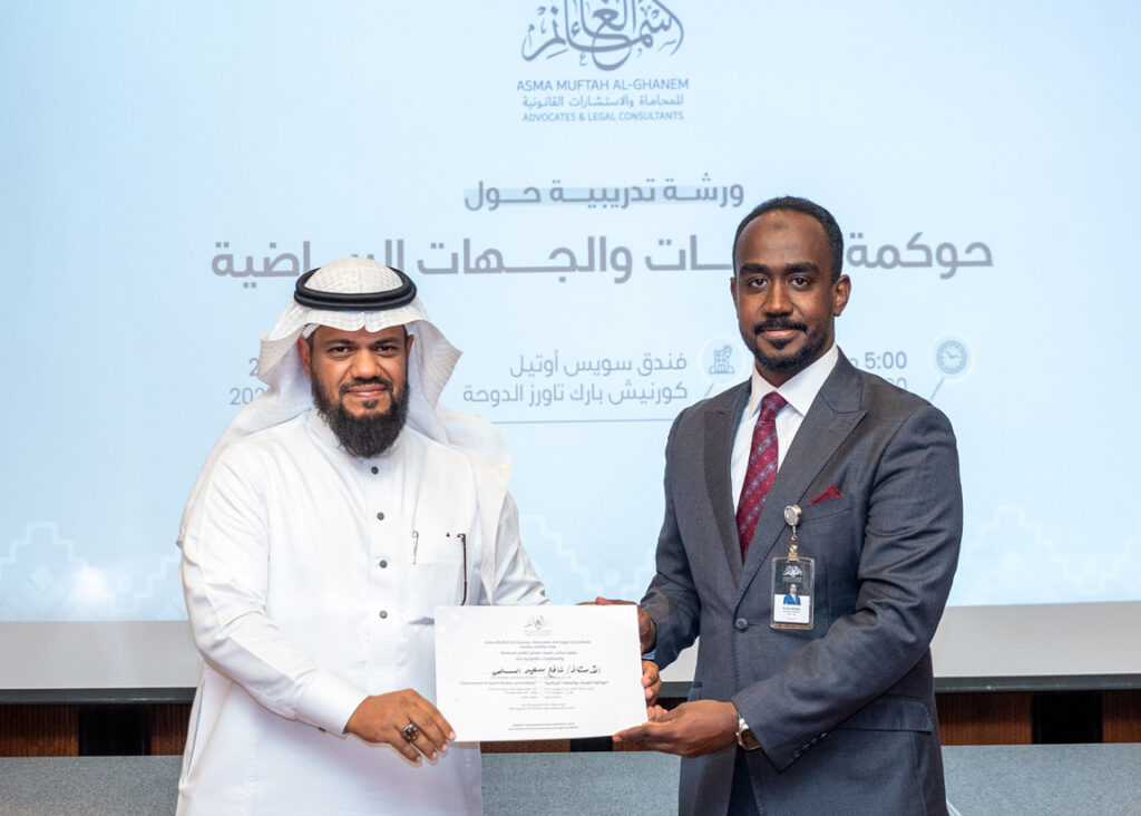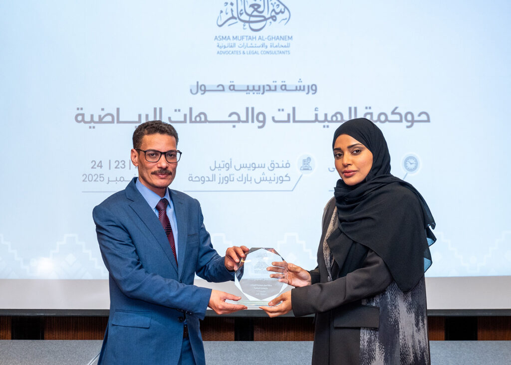 نظّم مكتب أسماء مفتاح الغانم للمحاماة والاستشارات القانونية، خلال الفترة من 22 إلى 24 نوفمبر 2025، ورشة قانونية متخصصة بعنوان «حوكمة الهيئات والجهات الرياضية»، وذلك تزامنًا مع فعاليات بطولة كأس العرب في قطر، وفي إطار الجهود الرامية إلى تعزيز الوعي القانوني وتطوير الممارسات المهنية في القطاع الرياضي.