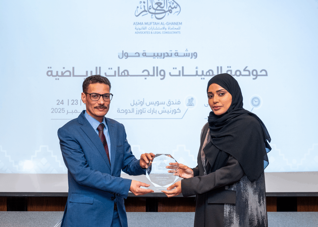 From 22 to 24 November 2025, Asma Muftah Al-Ghanem Advocates & Legal Consultants organized a specialized legal workshop titled “Governance of Sports Bodies and Institutions.”